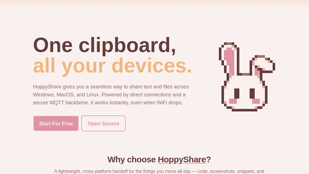 Syncs your clipboard across ALL your devices, whether you're connected to the internet or not. Windows, MacOS, Linux, and Android supported. Powered by MQTT and BLE, with a cute mascot that sits in your systray.